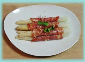 ホワイトアスパラのペッパーハム巻き