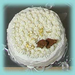 7、生クリームを塗り、スライスしたイチゴ等をはさみます。