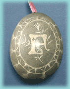 染料で染めた卵の殻に白鉛筆で模様を写し、