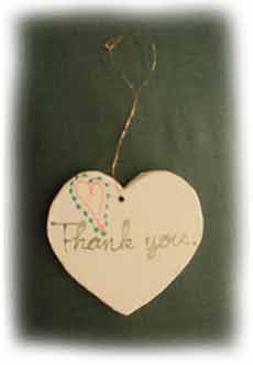 このハートは、次の年、“Thank you.”の文字を入れて、出産のお祝い返しの品に添えました。