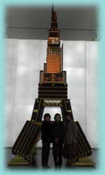トランクで作ったタワーの前で記念撮影。