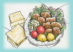 フリッター 鶏もも肉・ズッキーニ 鶏肉には、プレーン衣・パセリ入り衣、 ズッキーニには、粉チーズ入り衣をつけました。