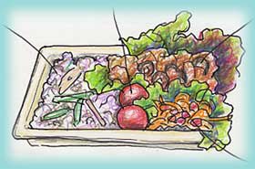 古代米と山菜の バターピラフ 昨日使った山菜が まだ半分ありました。 今日は、古代米とフツーのお米を半々で 醤油・みりん・バター・塩で味を付けて 山菜を乗っけて炊き込んでみました。 色がキレイ!! バターを加えて、メニューとのバランスを とってみたつもりです。