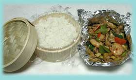 ご飯を下に敷いて、