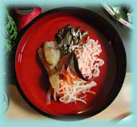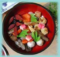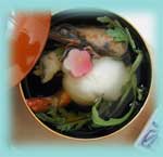 澄まし仕立てのお雑煮です。 ダンナサマの実家は京都なので、 白みそ仕立てでした。 それも美味しかったです。