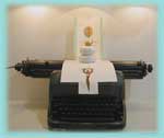 古いタイプライターの上に紙粘土で作ったお鏡餅、 その下は父が作ったしめ縄の切り絵、 後ろにはカリグラフィーの飾りを屏風に見立てて! お遊びです!